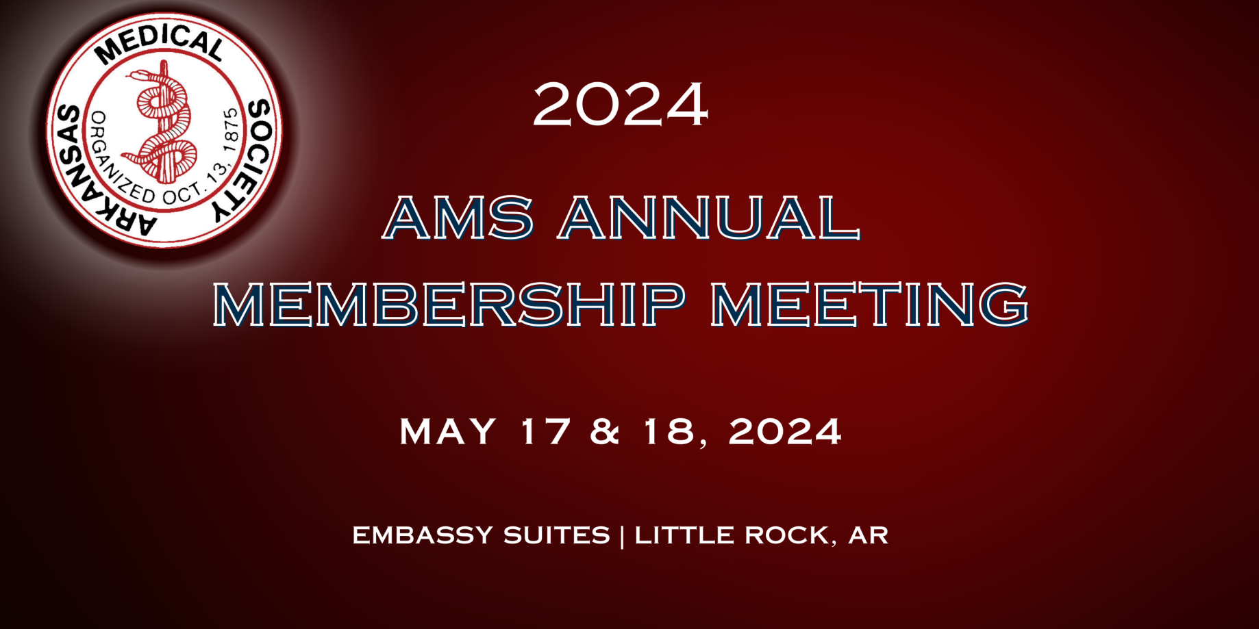 We are delighted to invite all physicians, non-physician clinic staff, students/residents, and spouse/guests to the Arkansas Medical Society's Annual Membership Meeting on May 17 and 18, 2024!